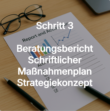 Sie erhalten Beratungsberichte, die faktenbasiert, präzise und deutlich schneller erstellt sind als in klassischer Beratung. So entsteht ein einzigartiges Hybridmodell: Menschliche Erfahrung und Künstliche Intelligenz, kombiniert für maximale Wirkung, Präzision und Geschwindigkeit.